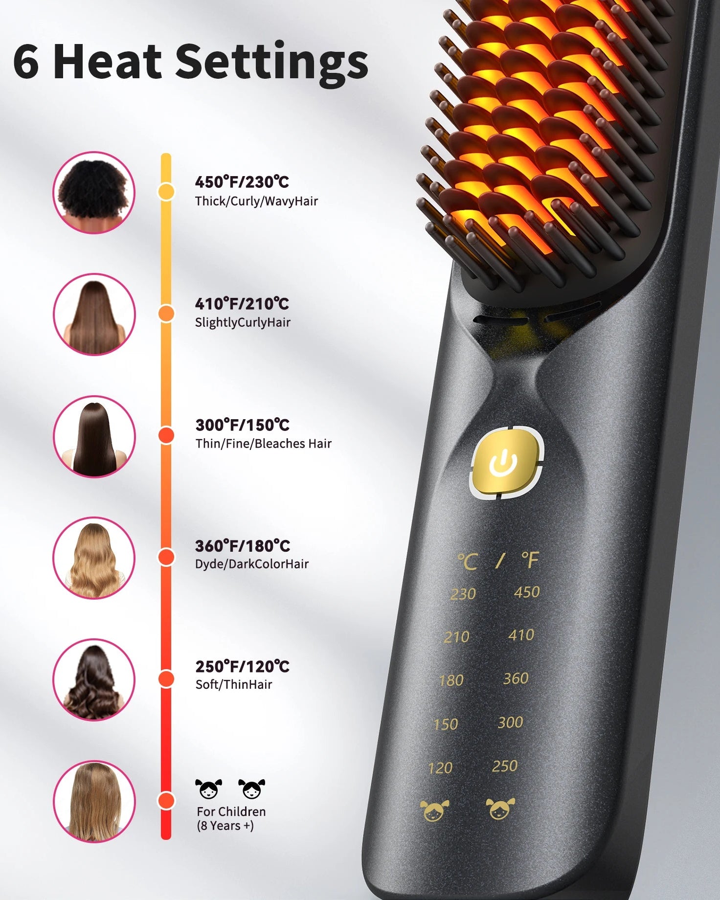 Transform your hair routine with this cordless straightening brush designed for on-the-go glam. Achieve sleek, straight hair quickly and effortlessly, anytime, anywhere.